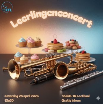 Kom zeker eens luisteren tijdens het leerlingenconcert op zaterdag 25 april om 15.30u. Ondertussen kan je genieten van ons dessertbuffet!